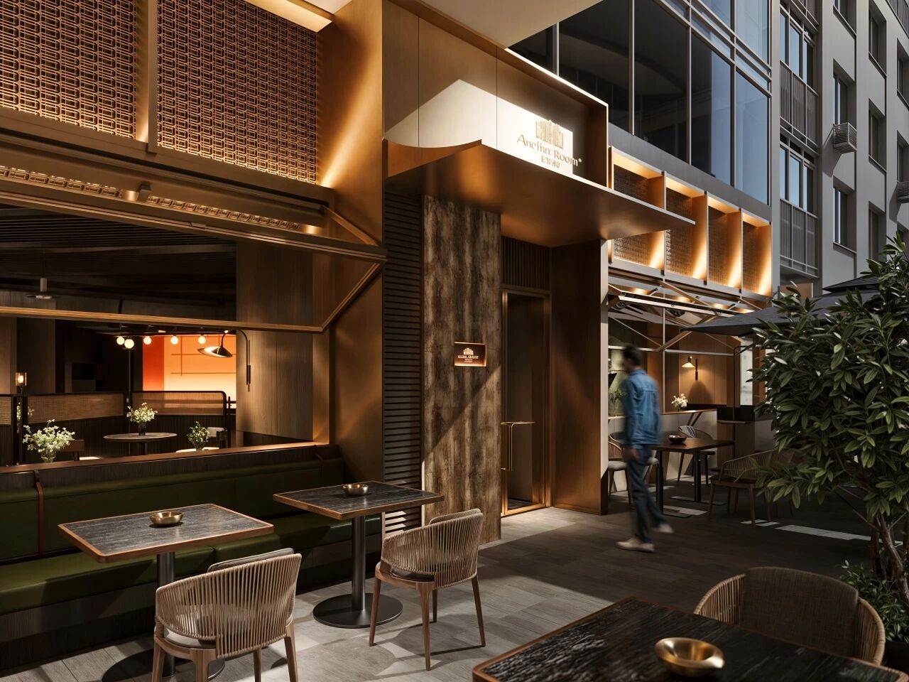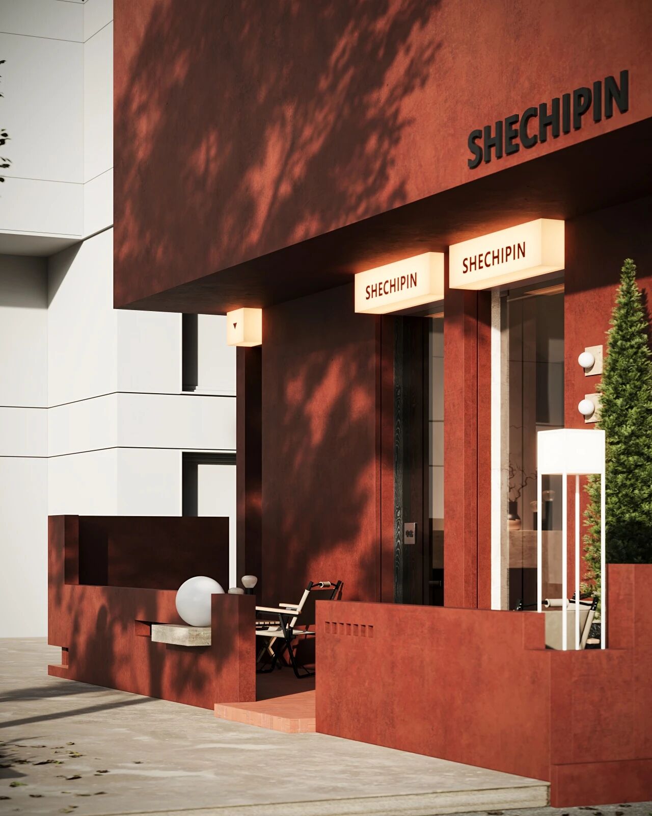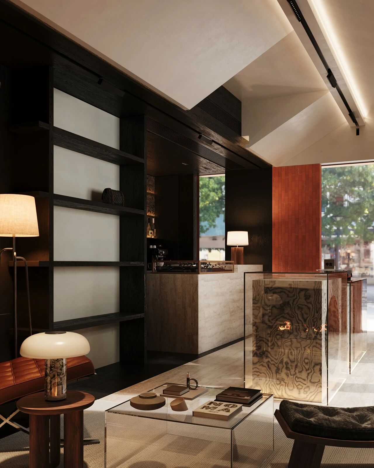 本项目难点在于材质对整体光感的影响。初期因某一材质反射过强,导致空间光感失衡。我们通过“光感-材质-镜头”三位一体的系统优化,逐步调整材质属性与灯光配合,精准控制反射与柔化效果,最终达成高级而协调的视觉呈现。门头部分则依托多维度实景参考,确立效果方向,确保外立面的品牌识别度与艺术性。
