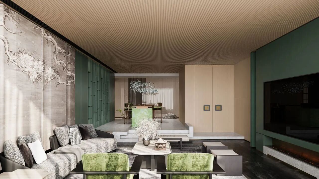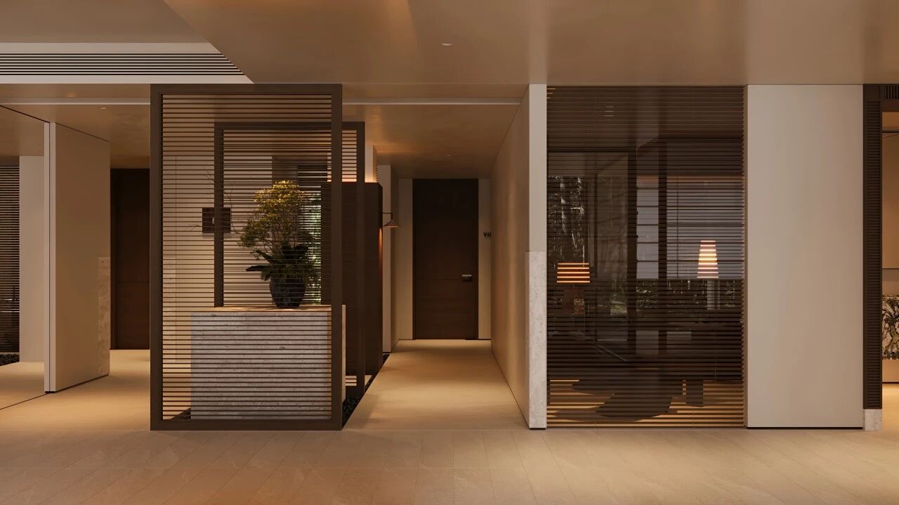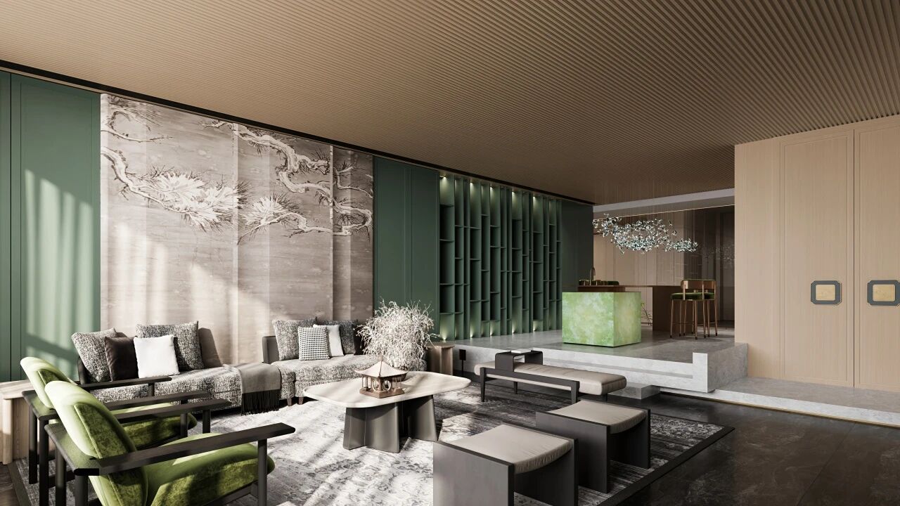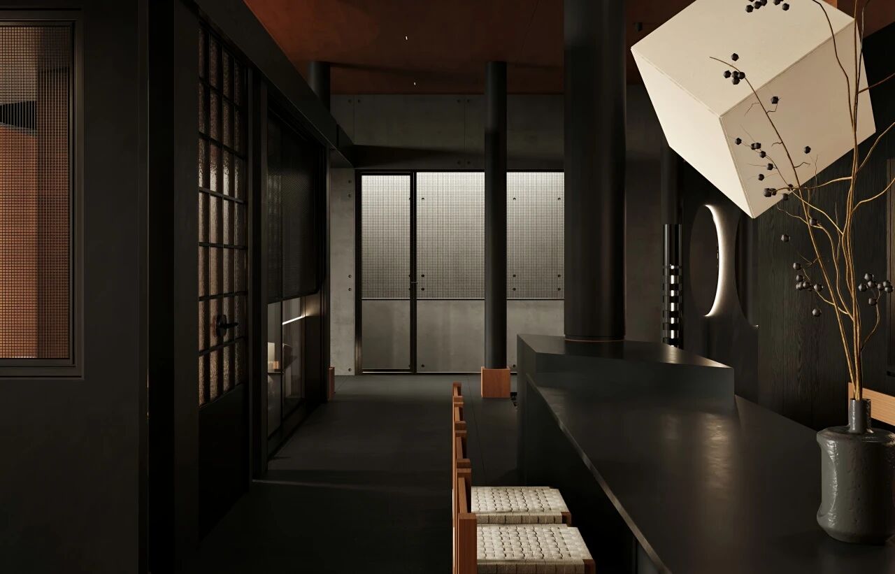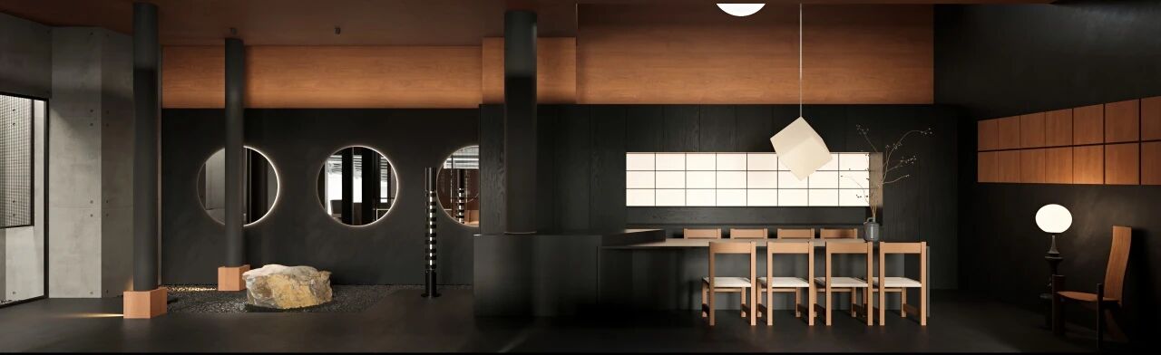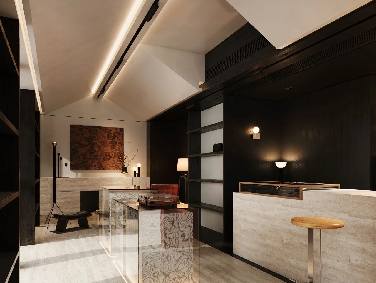 项目位于浙江宁波,为一处融合东方美学与现代功能的商业会所。设计以“办公即修行,洽谈亦赏心”为理念,将中式元素进行现代转译:接待区宫灯造型吊灯结合磨砂玻璃,营造柔和光影;洽谈区茶桌嵌入浅浮雕山水纹,搭配青瓷茶具与枯山水微景观,传递“茶禅一味”的意境;办公区则采用可调节竹编帘,兼顾隐私与通透,体现东方智慧与现代实用性的融合。