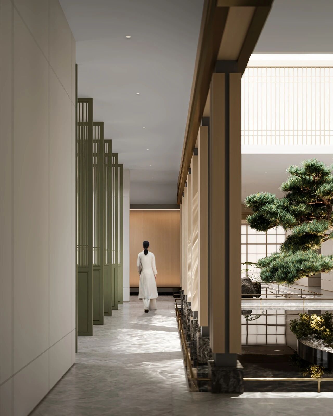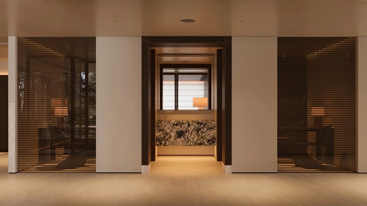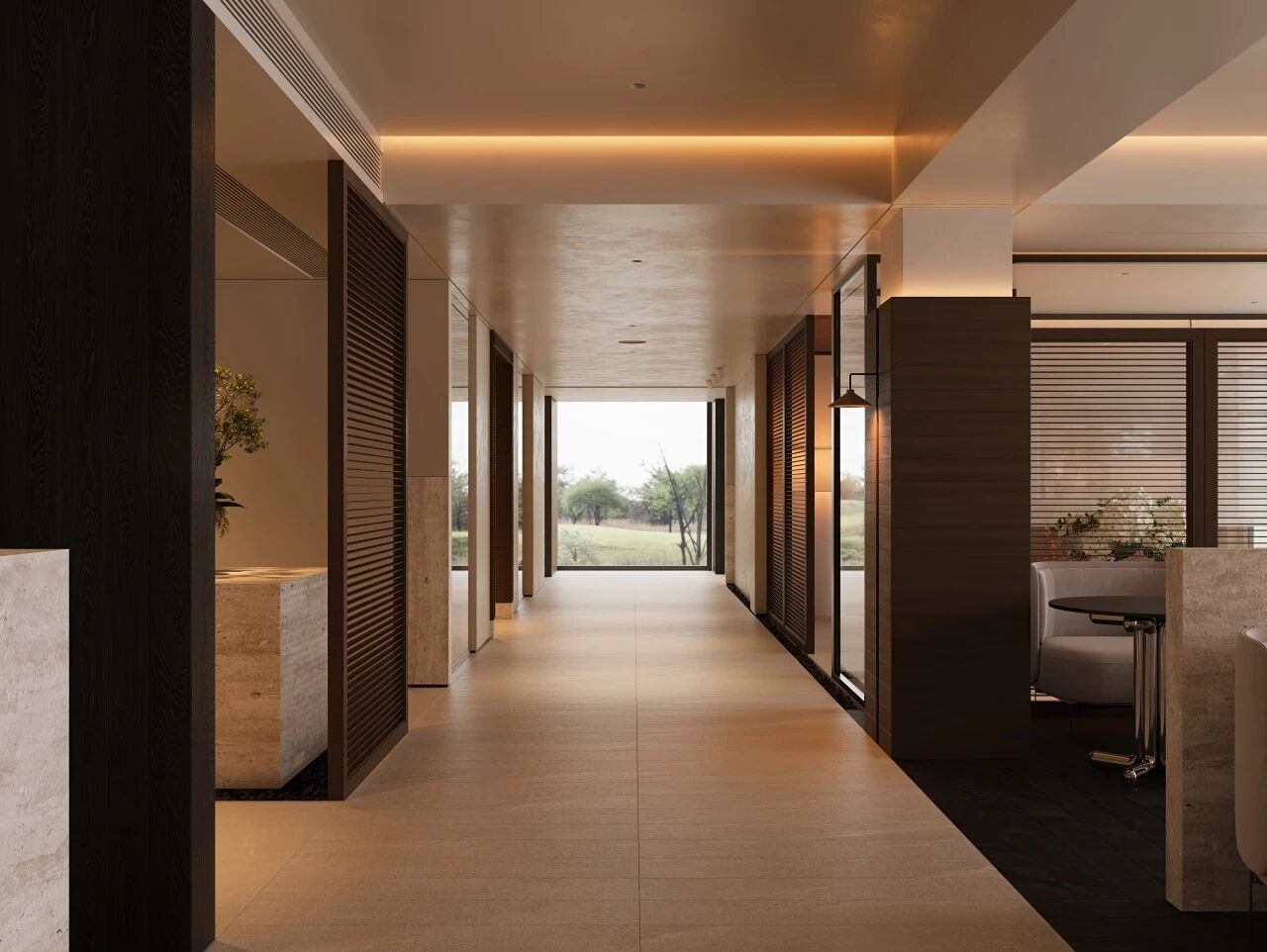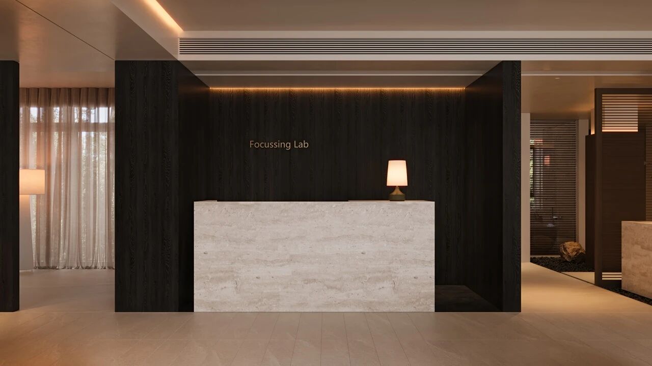 项目位于浙江宁波,为一处融合东方美学与现代功能的商业会所。设计以“办公即修行,洽谈亦赏心”为理念,将中式元素进行现代转译:接待区宫灯造型吊灯结合磨砂玻璃,营造柔和光影;洽谈区茶桌嵌入浅浮雕山水纹,搭配青瓷茶具与枯山水微景观,传递“茶禅一味”的意境;办公区则采用可调节竹编帘,兼顾隐私与通透,体现东方智慧与现代实用性的融合。