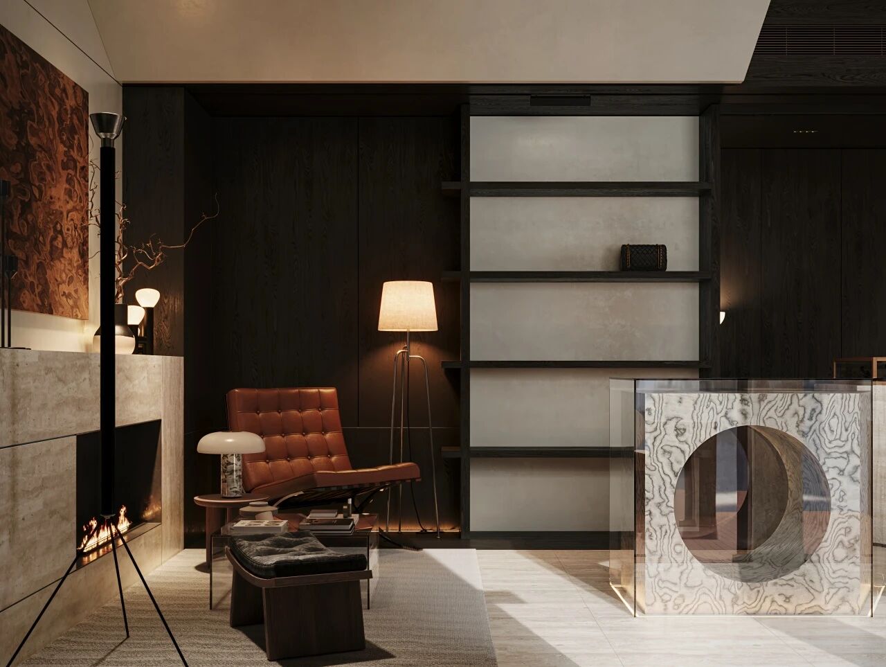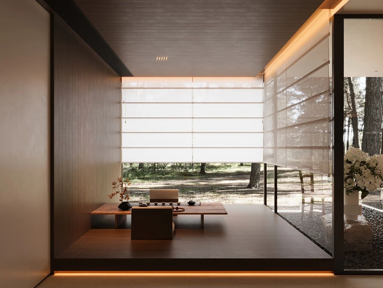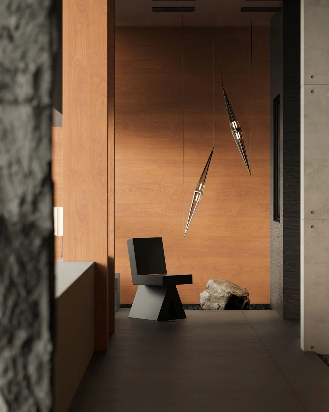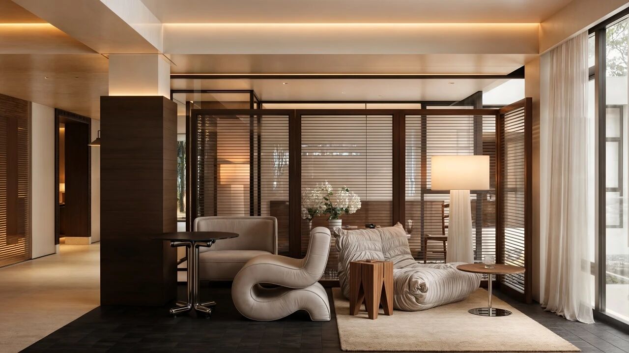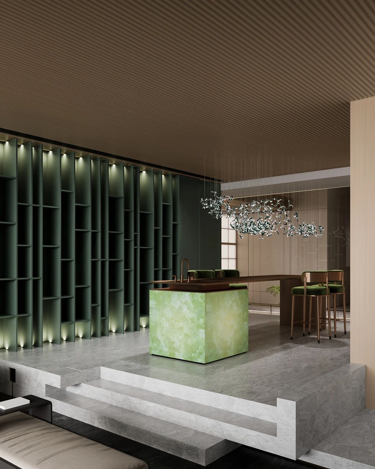 项目位于浙江宁波,为一处融合东方美学与现代功能的商业会所。设计以“办公即修行,洽谈亦赏心”为理念,将中式元素进行现代转译:接待区宫灯造型吊灯结合磨砂玻璃,营造柔和光影;洽谈区茶桌嵌入浅浮雕山水纹,搭配青瓷茶具与枯山水微景观,传递“茶禅一味”的意境;办公区则采用可调节竹编帘,兼顾隐私与通透,体现东方智慧与现代实用性的融合。