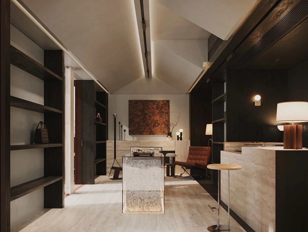 “奢己”奢侈品店以“浓缩奢雅・私享体验”为核心,突破传统陈列方式,构建沉浸式购物场景,在有限空间中实现品牌叙事与功能体验的双重表达。