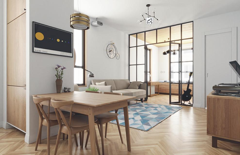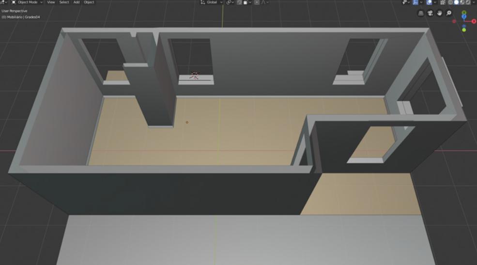 之后是通常的。我使用地毯的尺寸作为参考,以确保所有东西都有合适的尺寸。事情就这样发生了;Shift+A,添加平面、移动、挤出等。很快整个房间都被建模了。