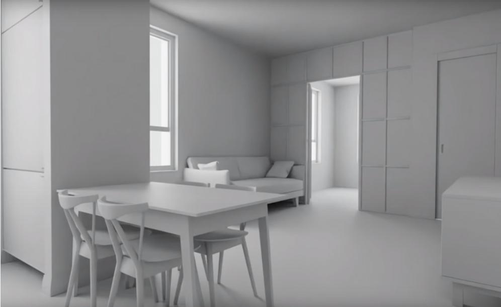 沙发和椅子也来自这个网站。在沙发上,我只换了脚,这样它们就会与其他木制物品保持一致。在椅子上我不得不工作更长的时间,因为原来的几何形状没有任何意义。然而,对于餐桌,我别无选择:我为自己建模,仔细而注意细节,甚至为腿上的螺丝建模。