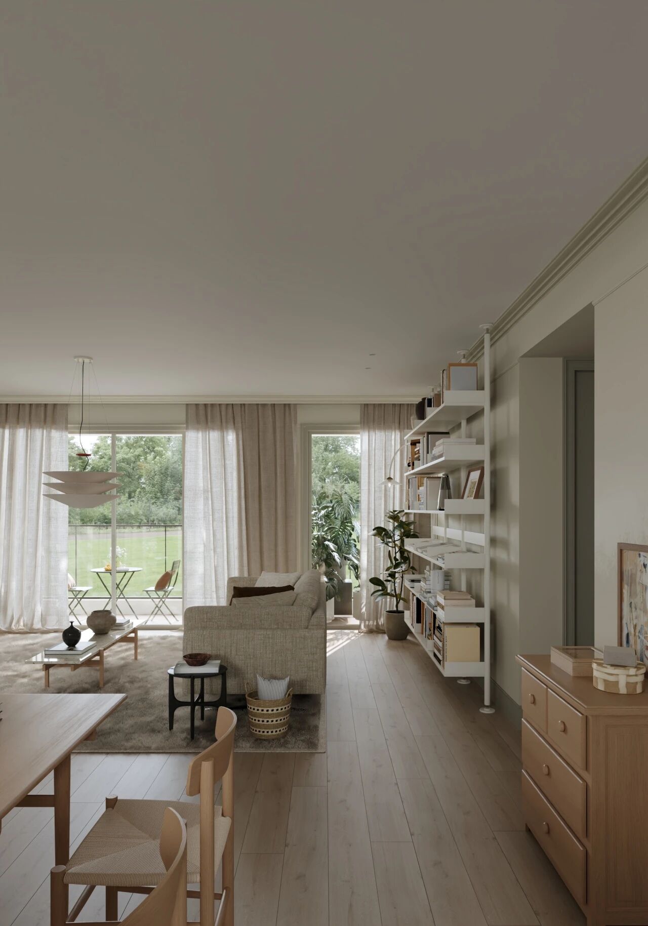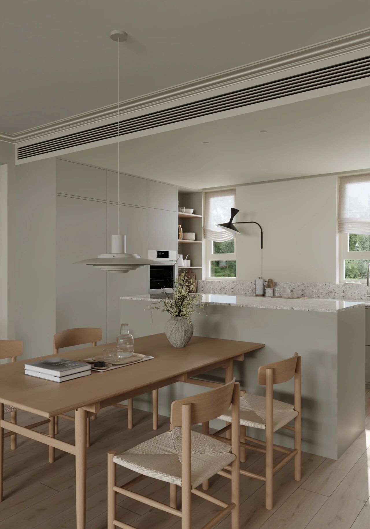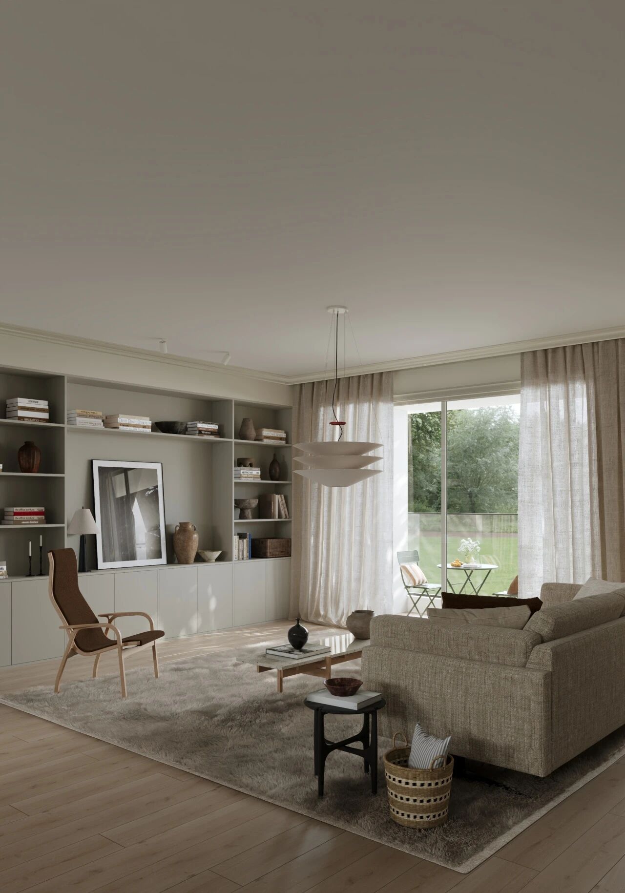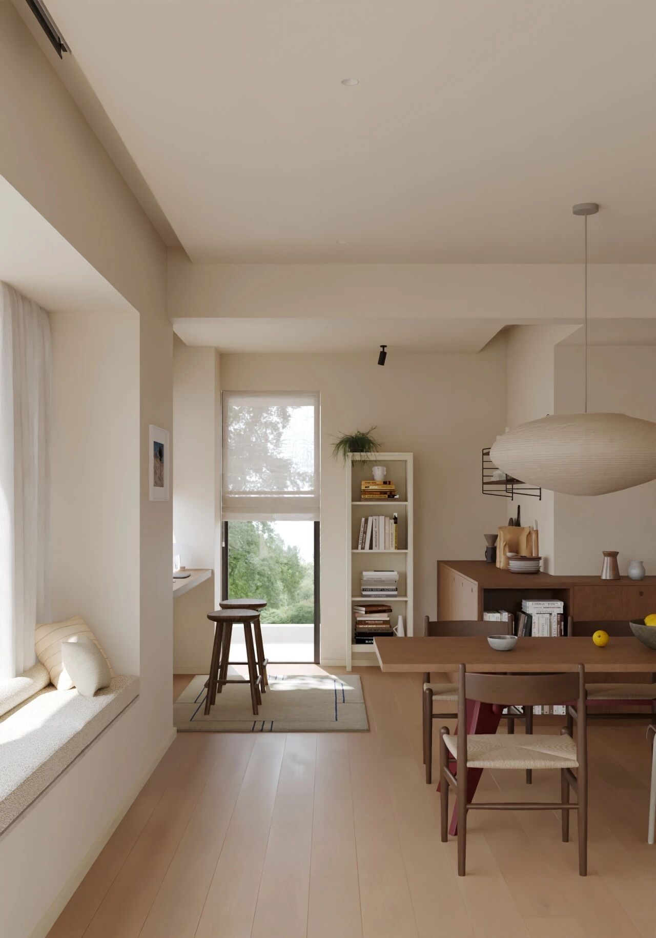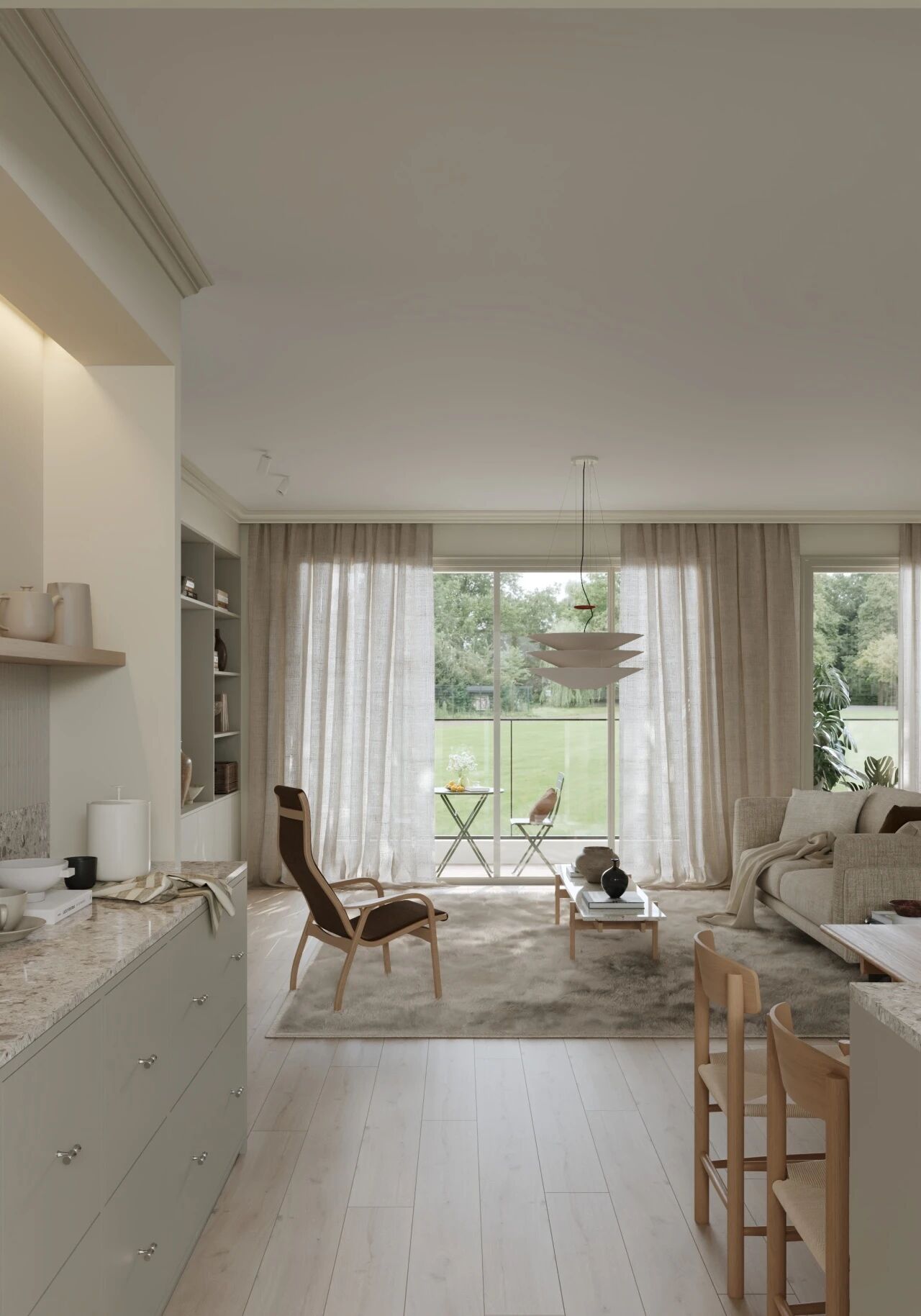 在本案中,设计师林七月以北欧风格为基调,强调空间中的自然光线与低饱和度色彩搭配,营造出通透而温暖的居家氛围。为精准还原设计意图,团队对日光与氛围光线进行了多轮调试,逐步提升画面亮度与光感层次。