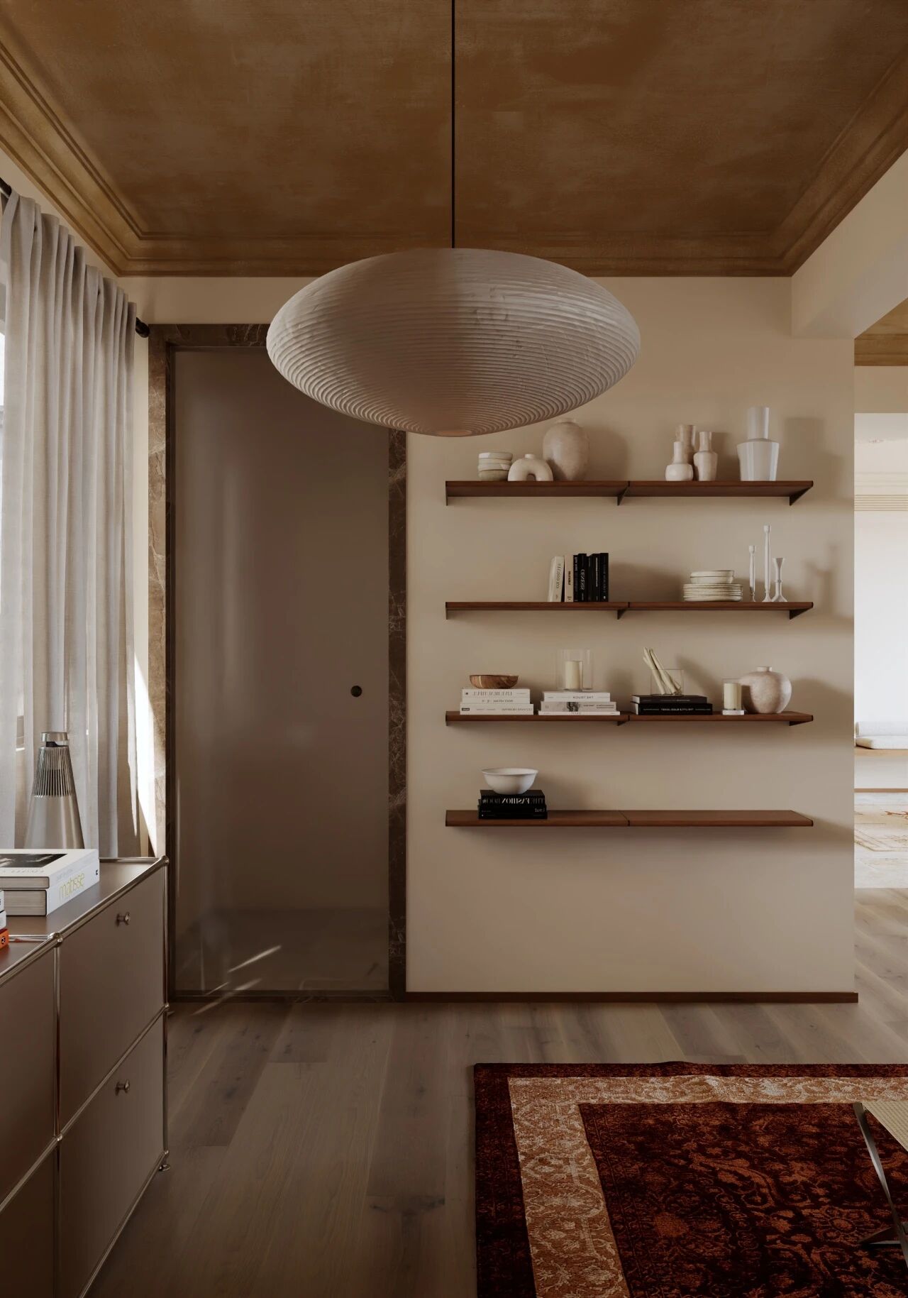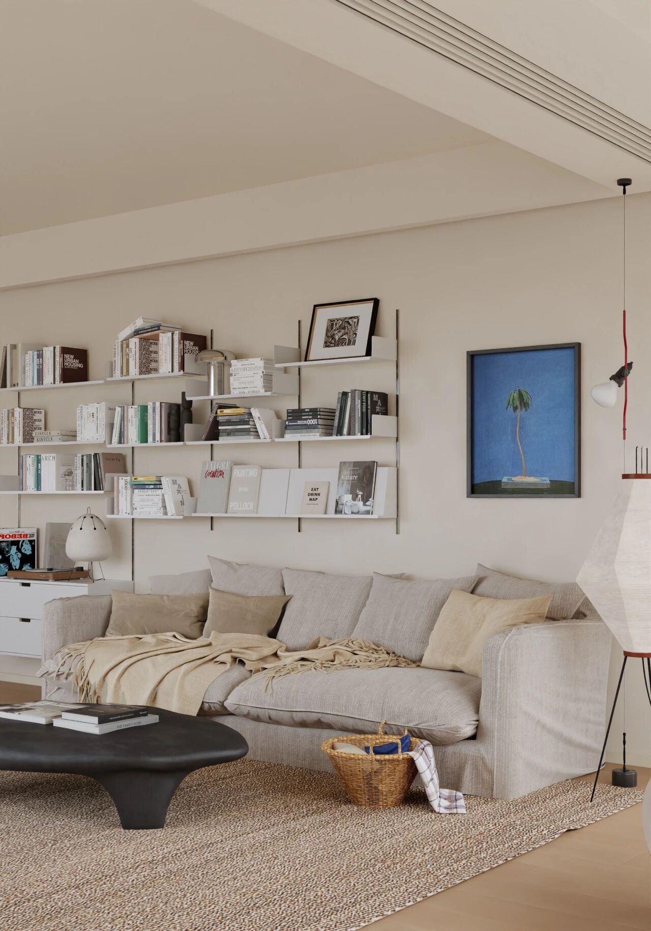 此外,包括沙发、边几、地毯在内的多项软装均通过自主建模完成,确保了整体视觉风格的高度统一与细节表现力。