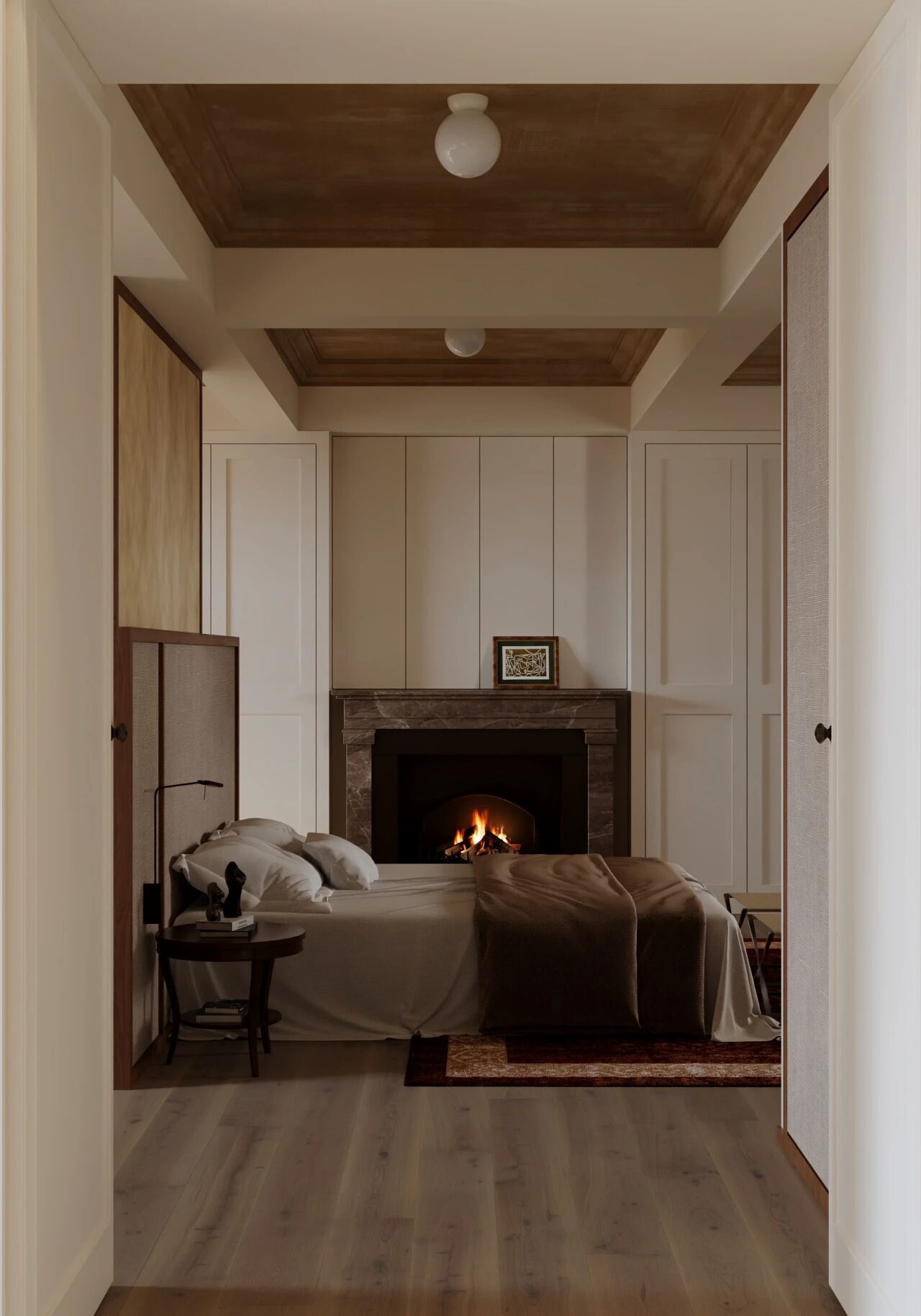 此外,主卧受限于窗型较小,自然采光不足,团队通过细致的光照设计与材质调节,在凹凸质感与饱和度等细节处反复优化,确保了最终成图的高质量呈现。