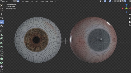 对于眼睛,我做了两个网格:内层用虹膜纹理,外层用圆形遮罩和折射材料。