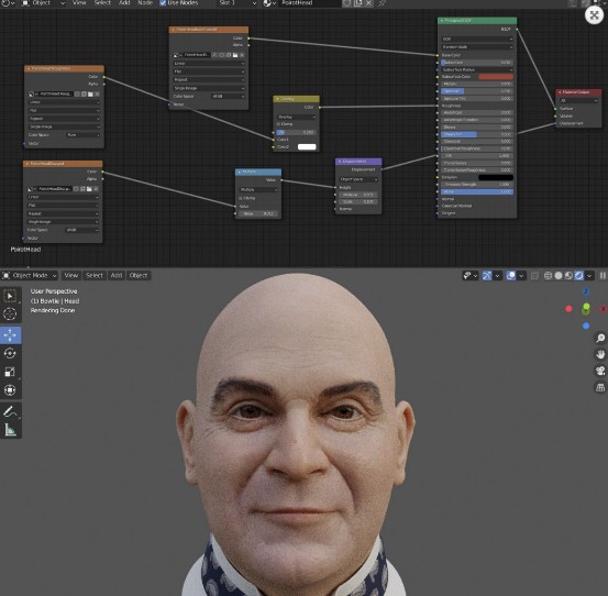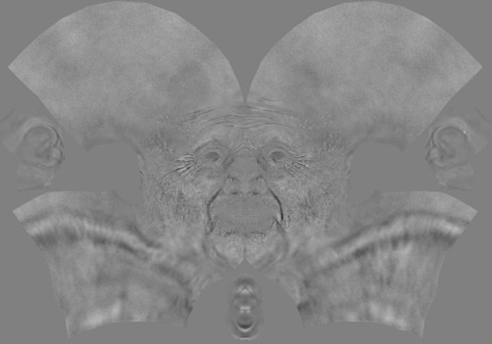 雕刻完成后,我导出了一个中多边形网格(43K点),并从同一细分层级烘焙了位移贴图。完成的头部模型包含超过1100万个点。