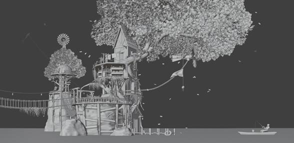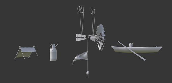 最后我做的是建模并添加更多道具,比如风车、船和小浇水壶,让场景看起来更细致。这些细节让我得到了更真实的渲染效果。