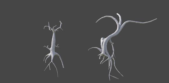 这棵树由两棵不同的树组成。我用了同样的技巧。首先,我从一个顶点开始,然后把它挤出来做成树形。之后,我添加了皮肤和细分表面修改器。最后,我雕刻了树,并用树皮贴图的位移贴图添加了位移修改器,这样我就能获得更多细节。