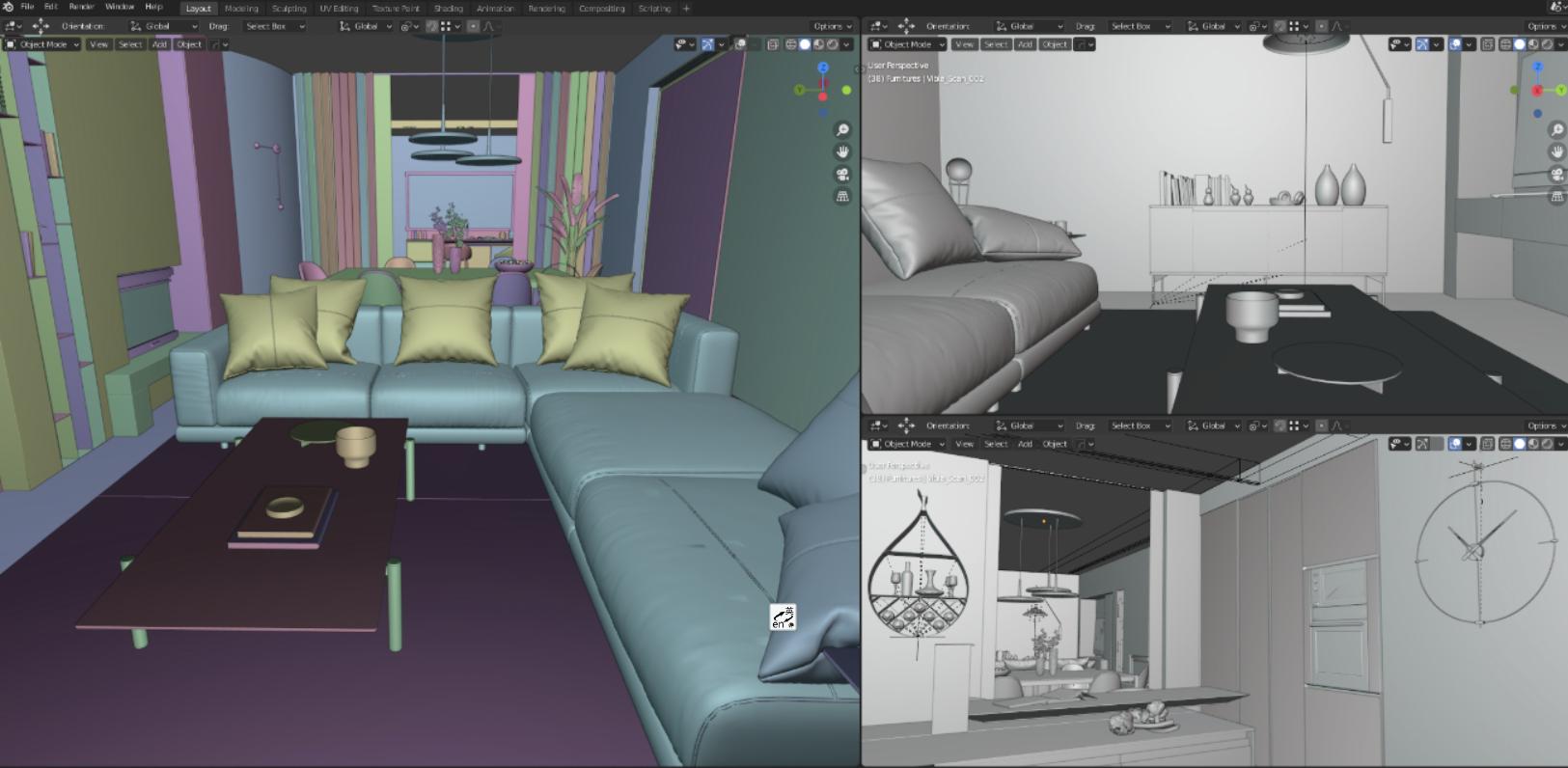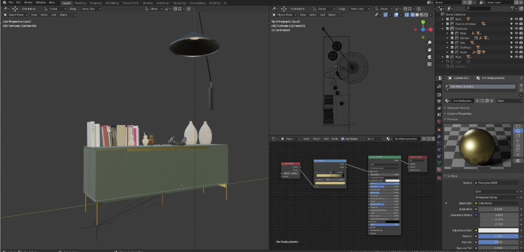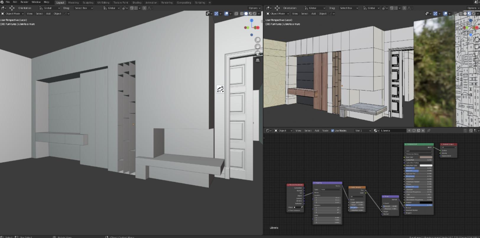 在开始建模或插入物品之前,我会根据设计师的指示准备所有必要的材料,即从图书馆购买或获取的模型,以及纹理(地板、墙纸、石膏、木材等),以便能够以有序且流畅的方式工作。