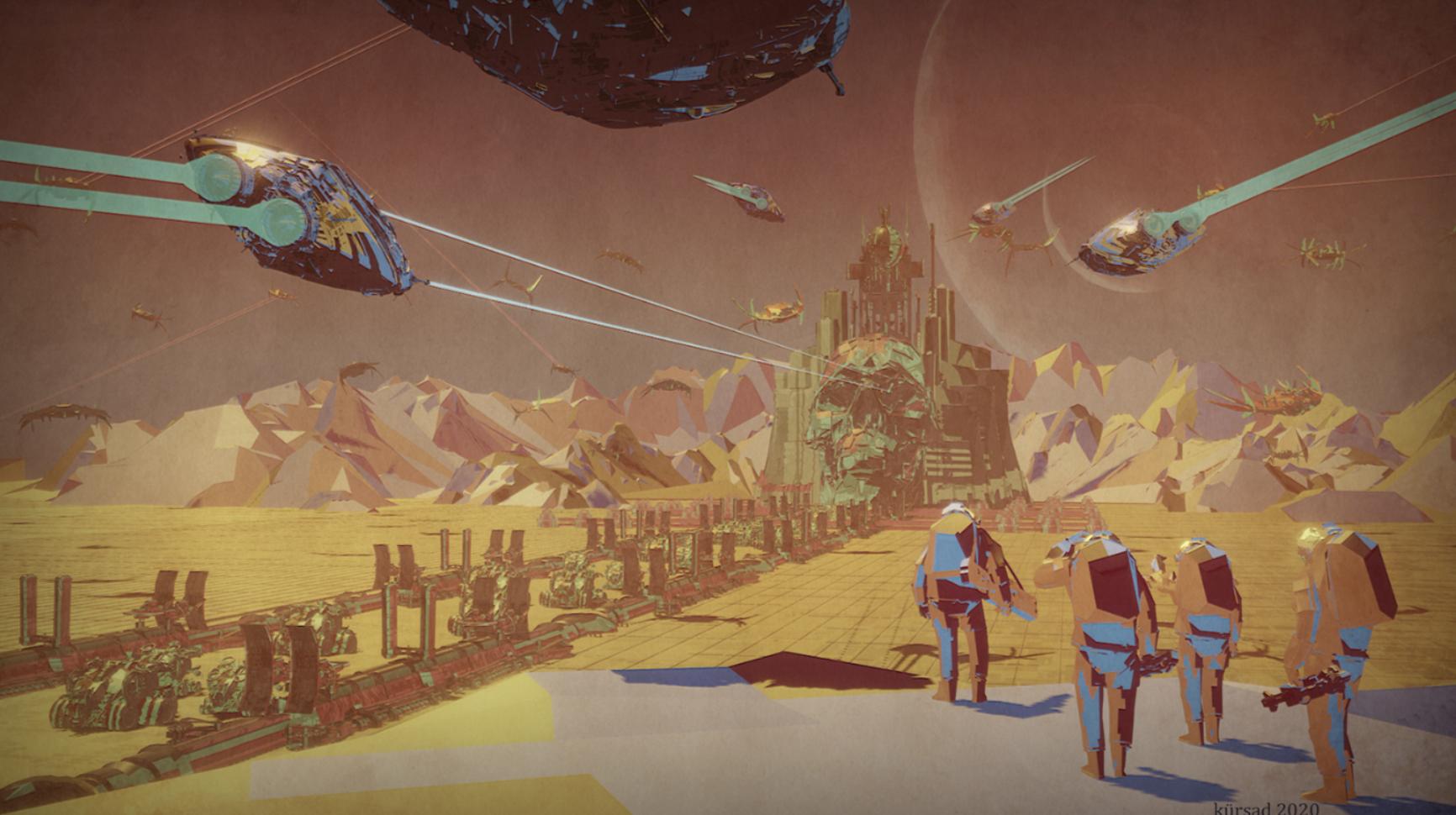 一旦最大形状就位,在周围放置一些基本形状是合乎逻辑的下一步。在制作过程中,我意识到结构缺少了规模感,这时我开始在它周围添加一些小频率细节。细节本身并不重要,只要它们能为整体造型增添一些价值就行。反正这本来就是一个远距离的天体。然而,整体轮廓必须易于识别,并能传达强烈的力量感。